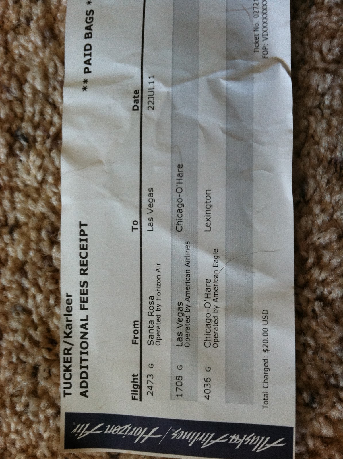 I booked the airline ticket to leave from STS (Sonoma County Airport) at 12:30pm on Friday the 22nd. Because I only live 10 minutes away, I thought it would be a no-brainer. I arrived to the airport at 1205pm with my flight delayed to 12:40pm. The ticket counter displayed a small sign saying that the desk attendants leave the desk 30minutes before the flights departure. By my calculations, that would mean that an attendant should remain at the desk until 1210pm. Am I right? So, like any logical person, I kept my cool and went over to one of 10 Alaskan Air computers to check in. I paid 20$ to check my bag in with Alaskan Air flight 2473 and I received my receipt with my baggage information as well as what connections I would be making.